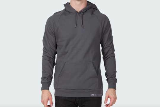 man modeling navy hoodie