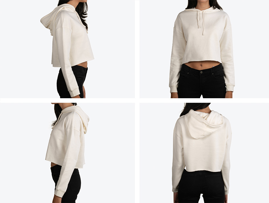 The sweatshirt is cropped in length, typically ending just above the waistline. This design gives it a modern and fashionable look, making it a popular choice for casual wear and athleisure outfits, and it’s available in 6 colors.