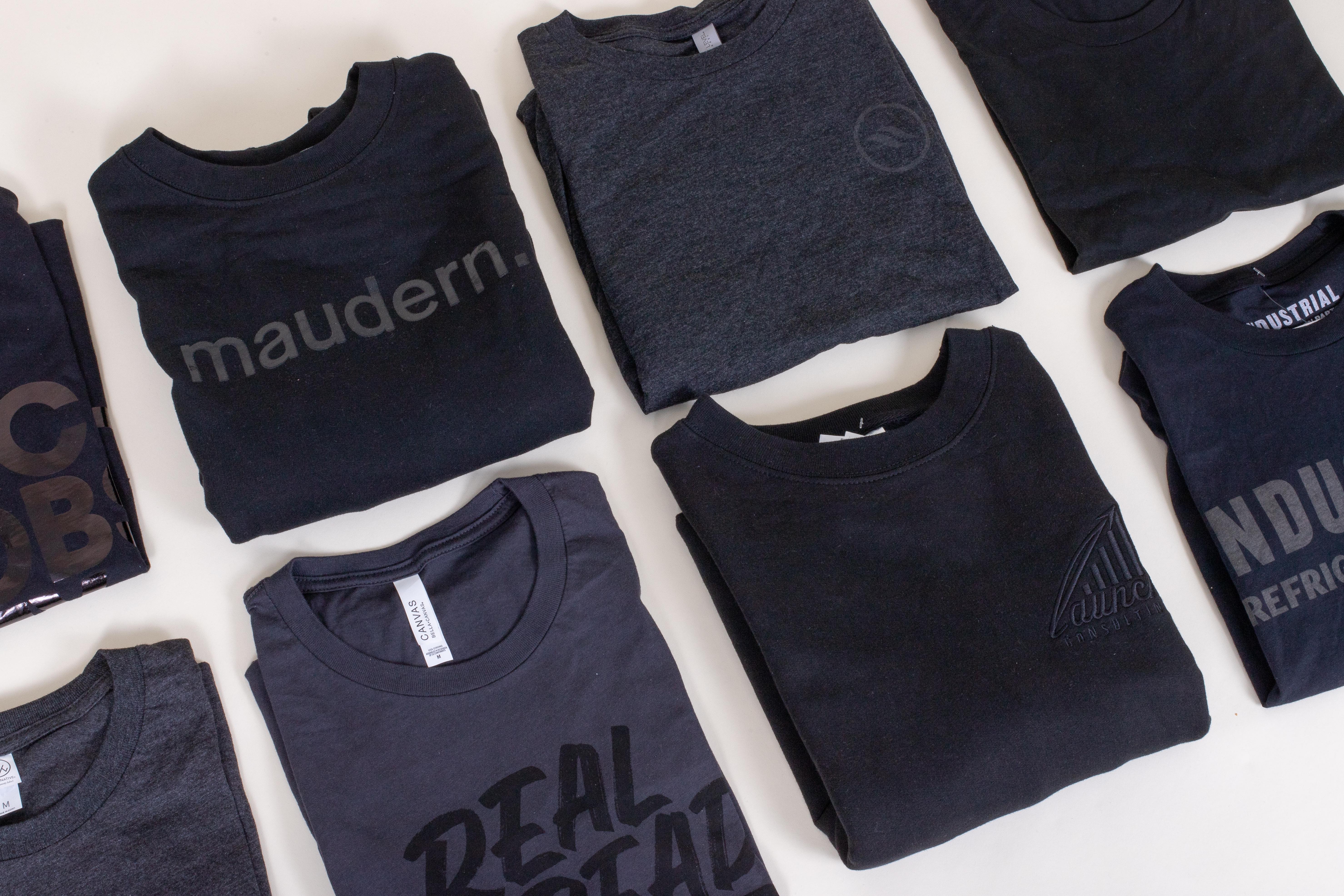 There are actually a variety of shades of black—in both garments and ink styles— so we need to pair up the right shirt color with the right ink color to get your desired result.