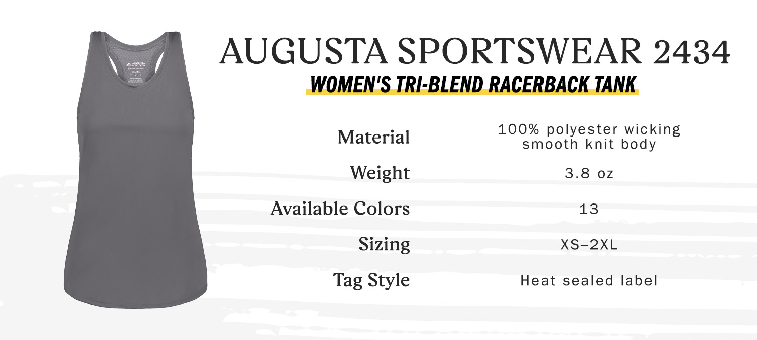 Looser-fitting custom racerback tank tops help us cool down easily. However, it’s important to remember that too flowy apparel might risk getting in the way, snagging on equipment, or causing us to trip and fall.