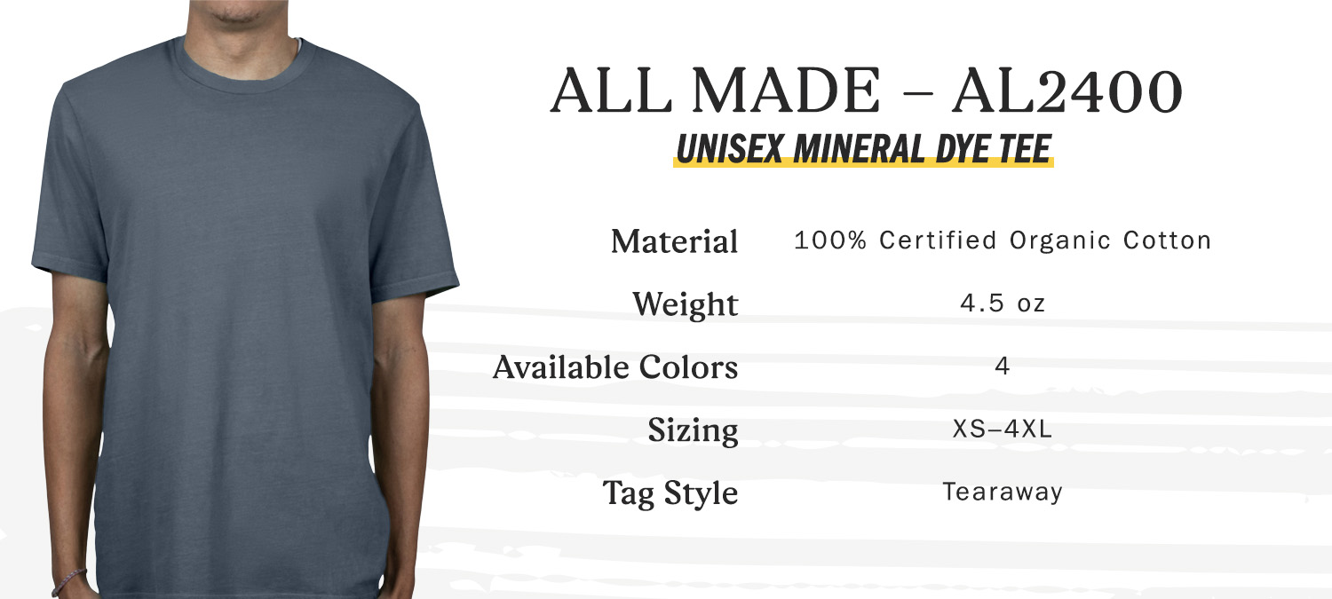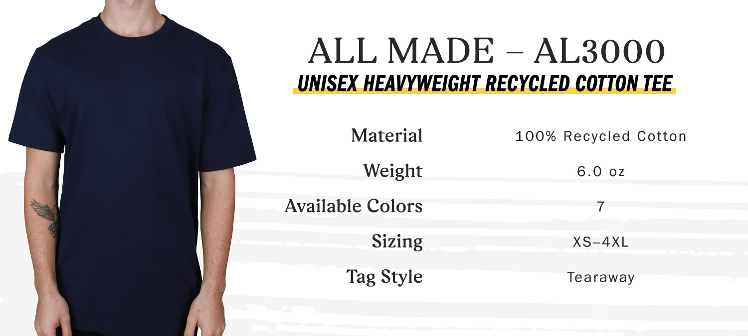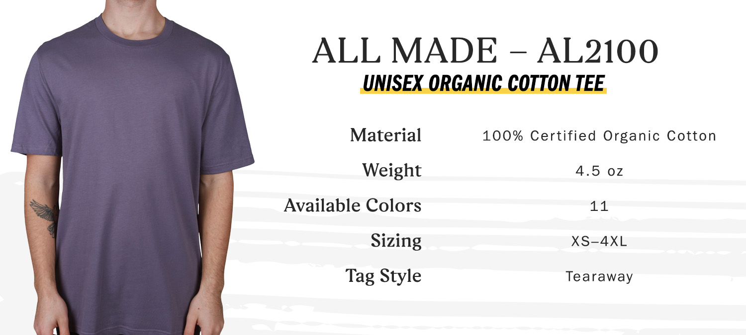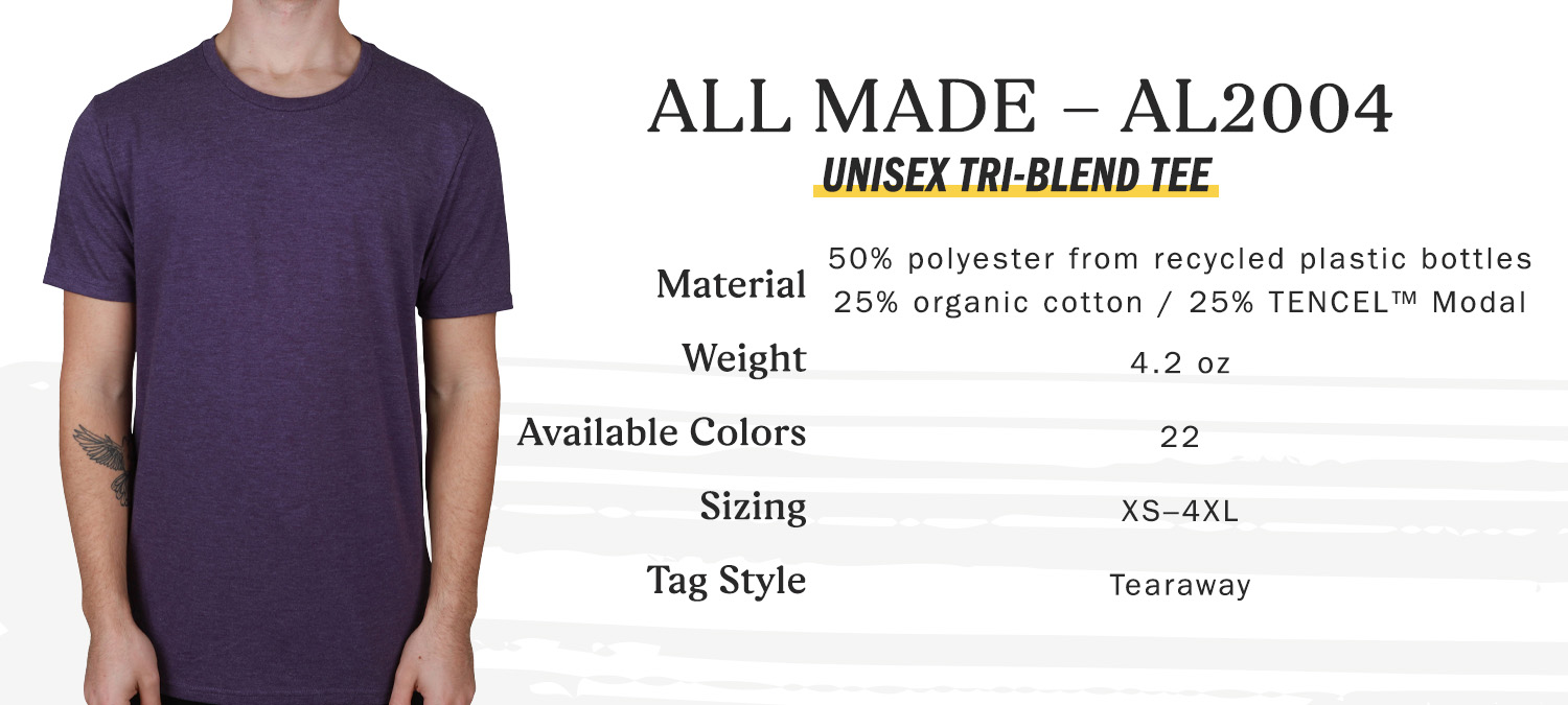 Allmade isn't just another apparel brand; it's a movement towards conscious consumerism. Founded by industry veterans and eco-conscious entrepreneurs, Allmade was born to create a better alternative to traditional t-shirts. Each Allmade shirt is made from a unique blend of sustainable materials, including organic cotton, recycled polyester, and TENCEL™ Modal, resulting in a product that is not only soft and comfortable but also environmentally friendly. Perfect for organic t-shirt printing. Yeah, that’s a thing.