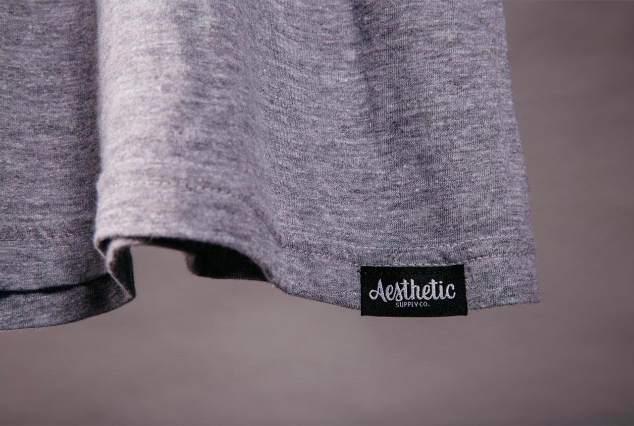 When placing a label on the neck area, we recommend satin printed labels. They are super soft, smooth, and non-irritating against the skin. For hip and sleeve labels, damask labels are more commonly used. The higher the damask count, the finer the thread, therefore the softer the label and the more detail you’re able to include. Athletic style hem tags are generally placed on the hip area and do not wrap around the bottom of the shirt, but are sewn on the front of the shirt. These are generally approximately 2" tall and 3" wide in size.