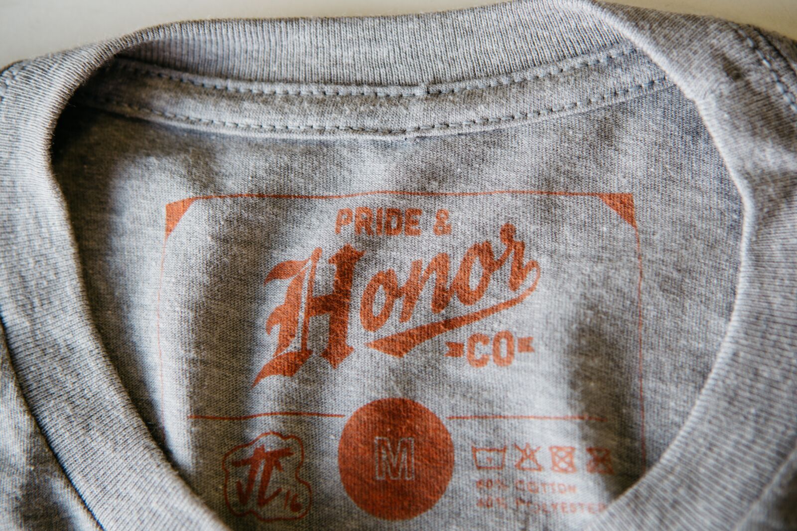 Use an ink that doesn’t show through the back. For your custom tags, it’s important to use an ink that doesn’t show through the backside of the shirt, especially with light colored shirts. To help with this, we have three methods we can use to add custom tags to the inside of your shirt, hoodie, or tank: pad printing, screen printing, or heat transfer. Each have their pros and cons which we'll cover below.