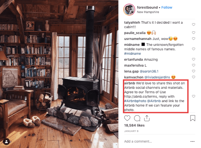 Airbnb does this regularly, relying on users for a lot of their Instagram content. Instagram stories, as well as retweeting, have made sharing user-generated content really easy. Notice: they also make sure to ask for permission ahead of time.