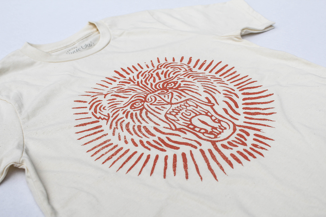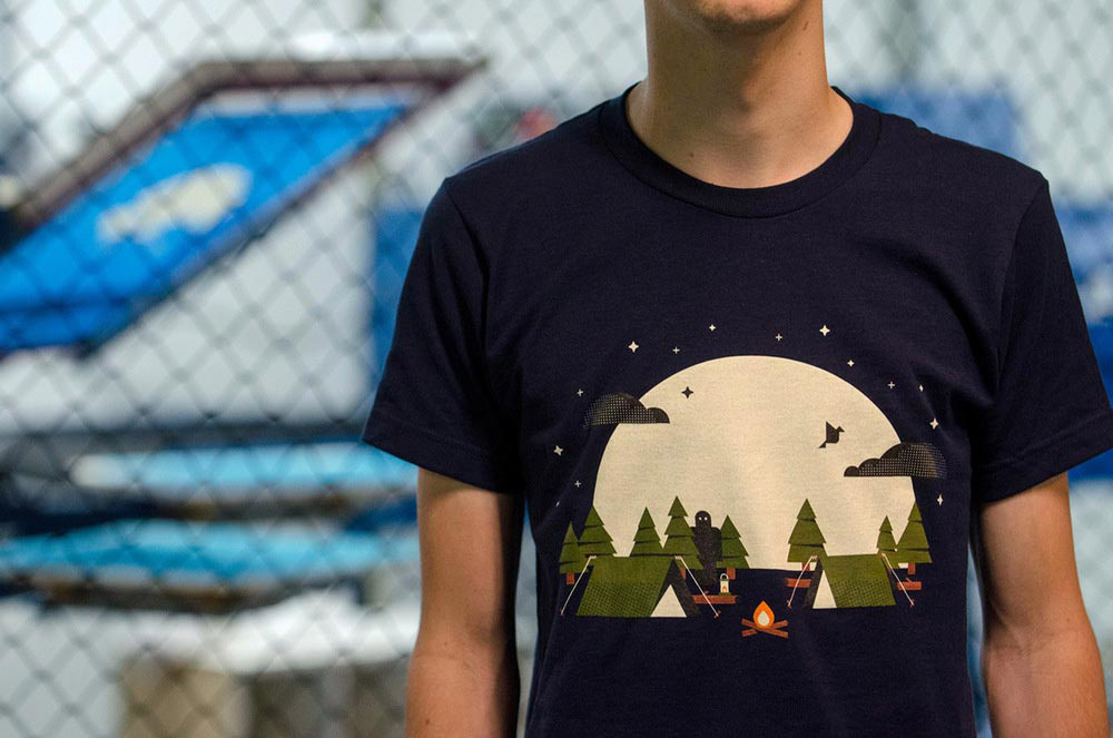 “My t-shirt designs typically evolve out of a branding project, so by the time we're discussing apparel printing the design itself is complete. The main task is then adapting the vector art for a one or two color screen print and selecting the best shirt and ink colors to work with. I've never liked heavy, plastisol style printing on shirts, so I usually try to steer clients away from that and towards softer, discharge style printing. I studied screen printing at art school when the shift was happening from oil to water-based inks, so I've always really appreciated the work that goes into a quality textile print.”