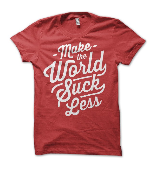 “As far as my process for designing a shirt for a client, I am usually given a message or concept they need to get across to a very specific audience. My job is to figure out how I’m going to visually communicate that idea in an impactful, easily reproducible, cost effective method. I try to keep the imagery as simple & graphic as possible for a quicker read. Then I do my best to make sure the design, style and color palette is appropriate for the industry and demographic I’m targeting. The fit and style of the shirt also play a factor. You wouldn’t want to design on a slim fitting, deep V-neck for a group of accountants attending a trade show. Lastly, I guess, the ultimate goal is that the client generates buzz, loyalty and more business as a result of the shirt I design for them. It’s always nice to hear when clients have to reorder a particular design only a couple days after delivery, simply due to the insane demand.”