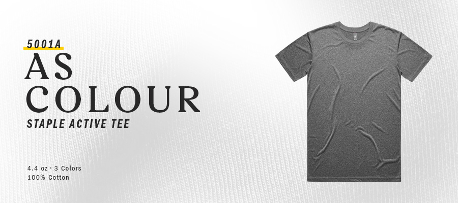 “The perfect workout tee. Super lightweight and doesn’t hold onto sweat. Most other athletic blanks are lower quality and are not flattering. The As Colour 5001A is the opposite and is more comparable to a high-quality athletic shirt like Gym Shark or a Lululemon blank at a reasonable price.“