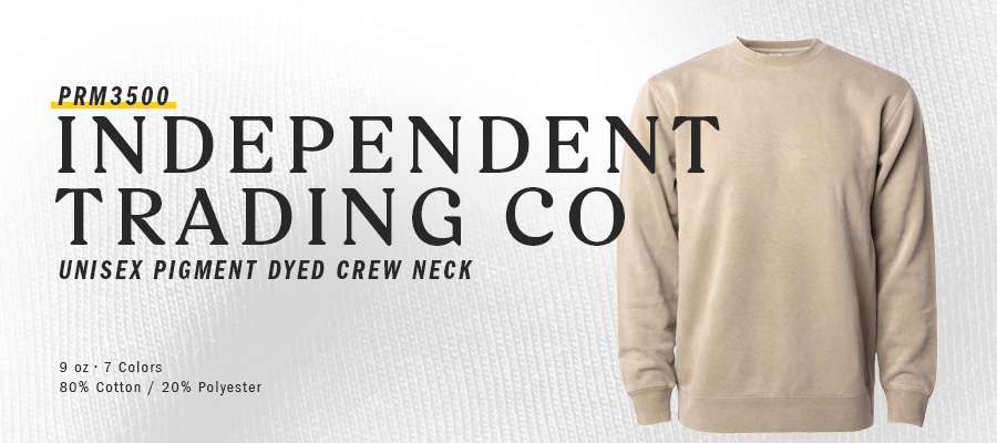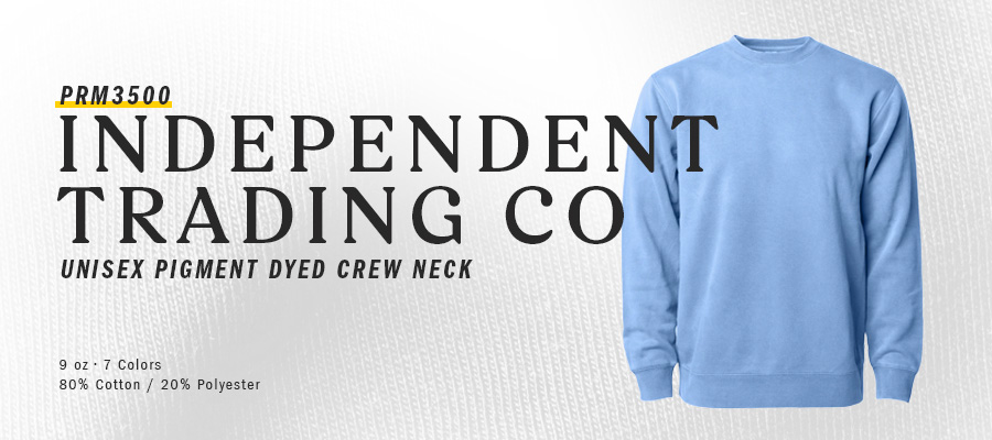 Johnathan’s Pick: Independent Trading Co PRM3500 Unisex Pigment Dyed Crew Neck