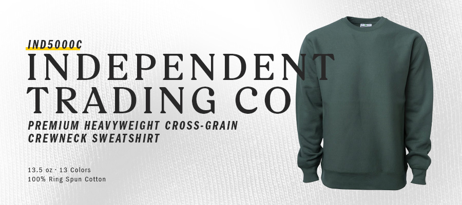 Trey’s Pick: Independent Trading Co. - Legend - Premium Heavyweight Cross-Grain Crewneck Sweatshirt - IND5000C