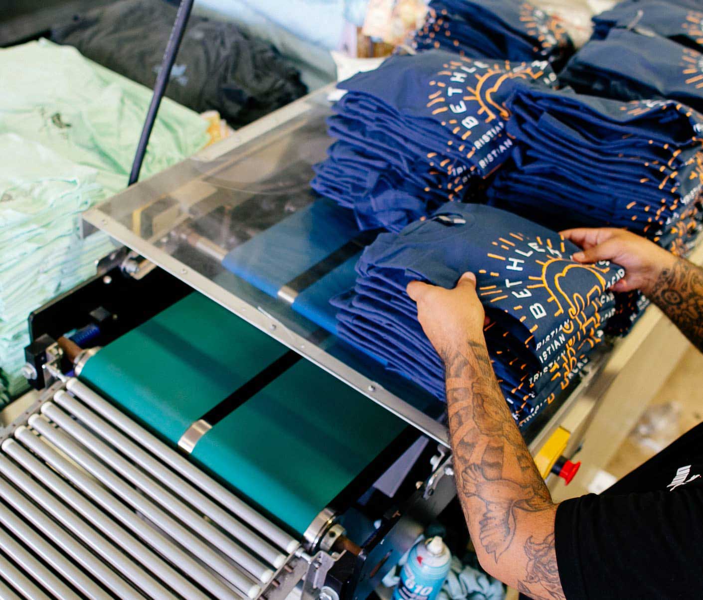 From our Real Thread HQ, we'll print your requested items—and then our fulfillment team will get to work obtaining any other swag items you'd like to send in one package. Remember, if you don't find the product you're looking for on our site, contact us and we'll work with you to find the perfect garment for your needs.