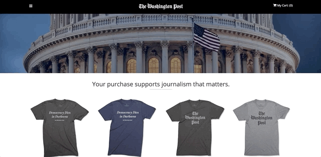 After a spike in reader demand, the Washington Post decided to start selling t-shirts as a way for their subscribers to support and promote their favorite publication. Knowing this was no small task, they started looking for a partner who would provide retail-quality shirts and the smoothest experience possible.