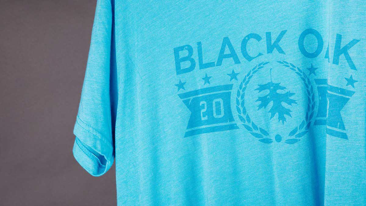 Tonal printing is a screen printing process in which we use water-based ink to create a print slightly lighter or darker than the color of the shirt we're printing on.
