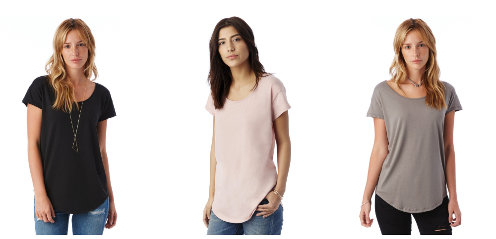 Scoop-neck t-shirts have had a very popular year, and it doesn’t look like that trend is going anywhere. This soft, flowy scoop-neck from Alternative Apparel is one of the best.