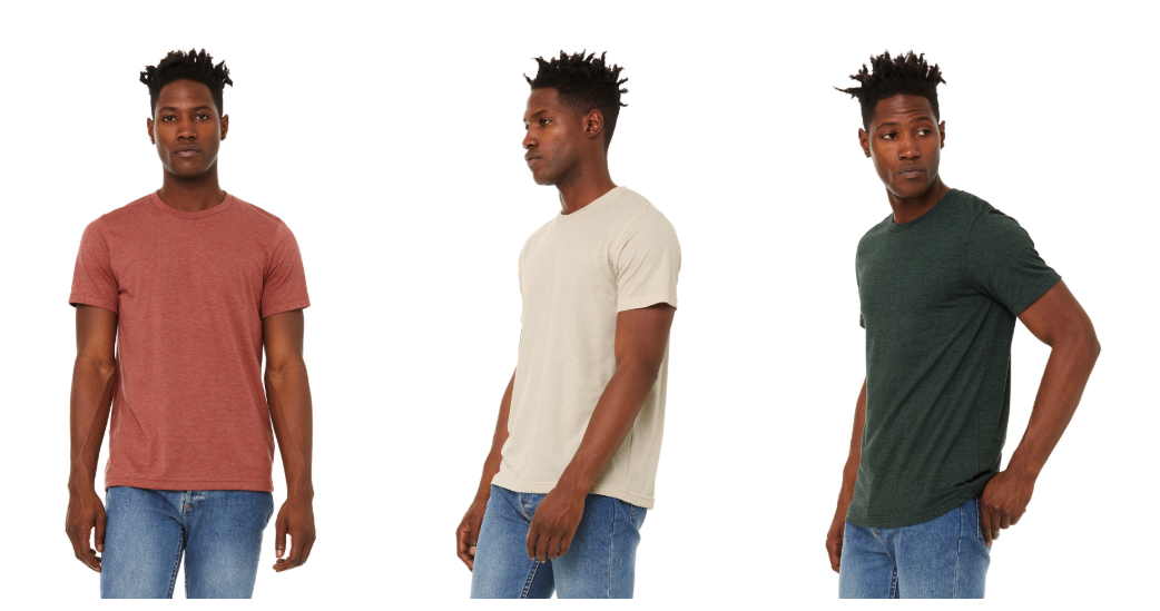 This t-shirt from Bella-Canvas is a new twist on a classic t-shirt. Through a special finishing process, they give this t-shirt –– a polyester/cotton blend –– a suede look and feel, something very unique to the custom t-shirt world.