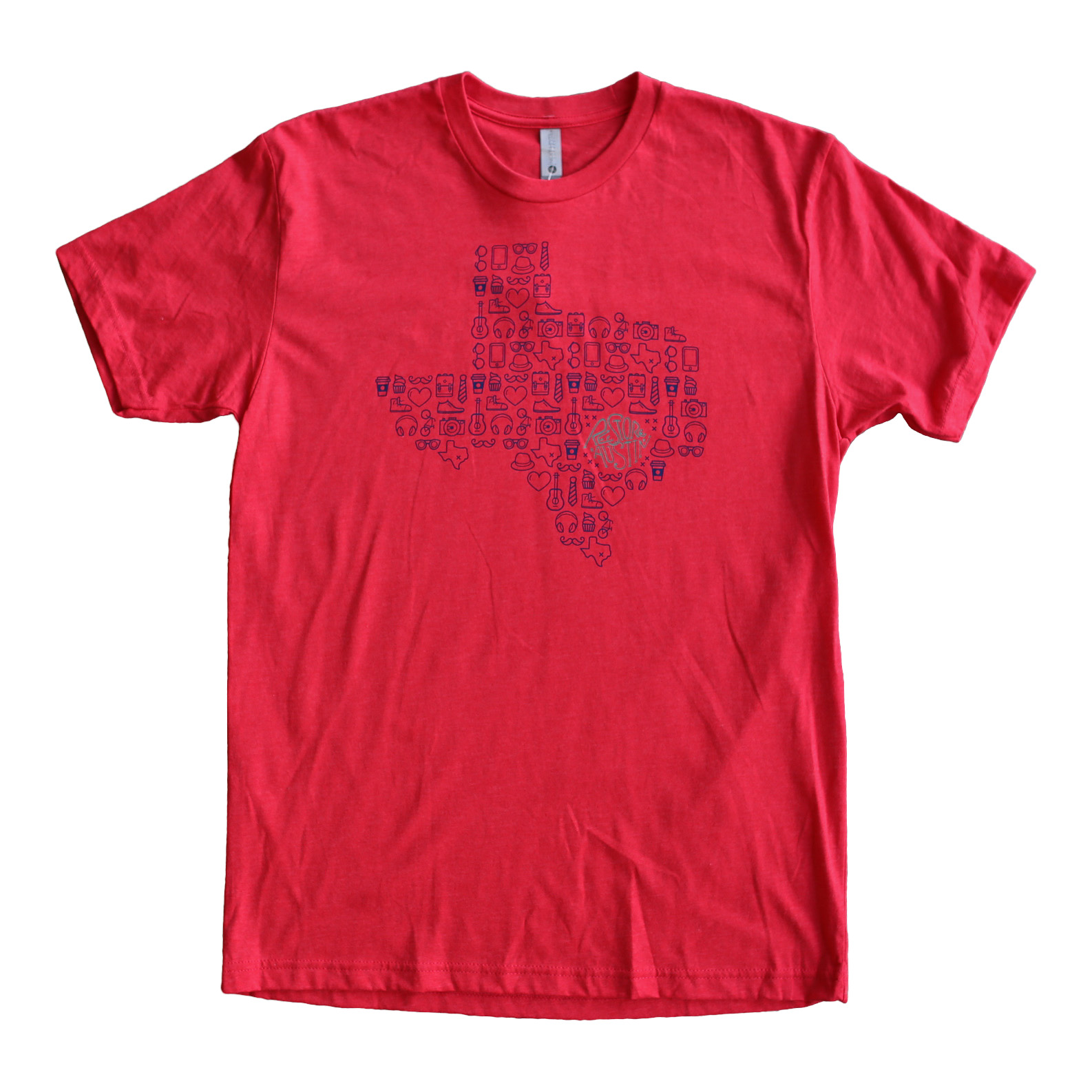 Great use of the Texas state colors in this bold, eye-catching t-shirt. Earlier in the year, we listed iconography as a t-shirt trend we’d seen a lot of in 2018, and this t-shirt was one of our favorite examples.
