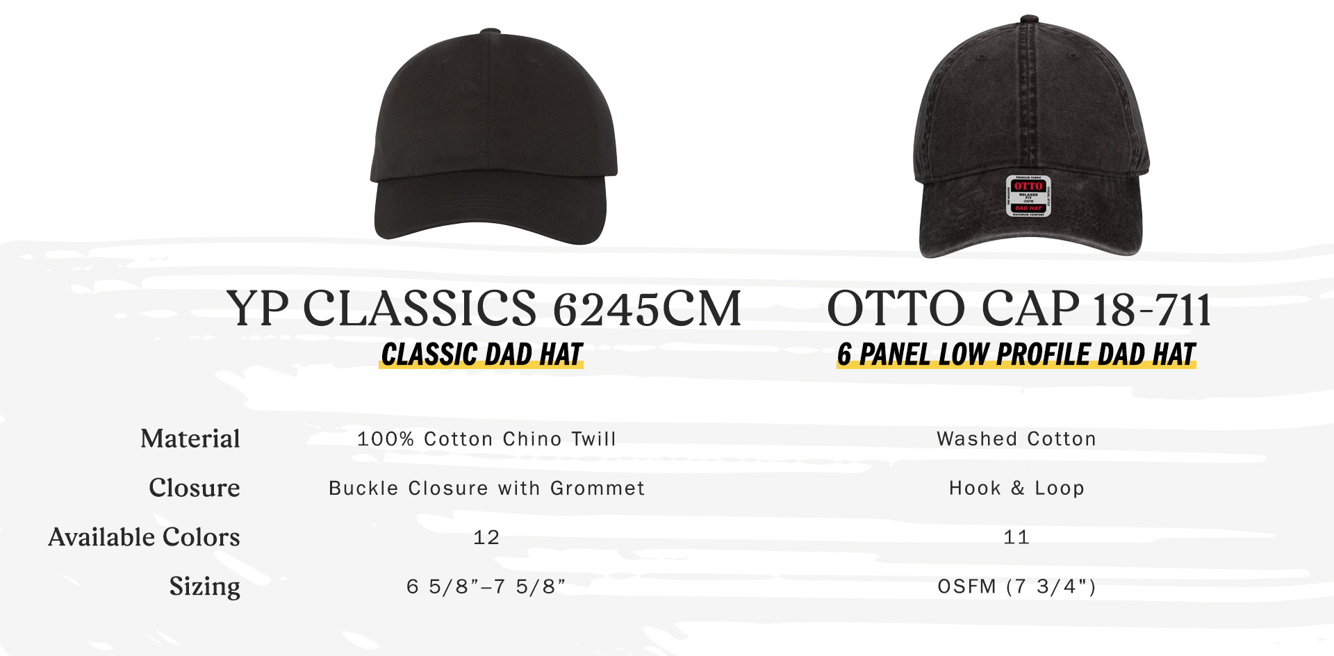 Read on if you’re ready to learn more about ordering custom dad hats, specifically the YP Classics 6245CM or the Otto Cap 18-711. Both hats are stellar, but there are a few differences between them you should know about.